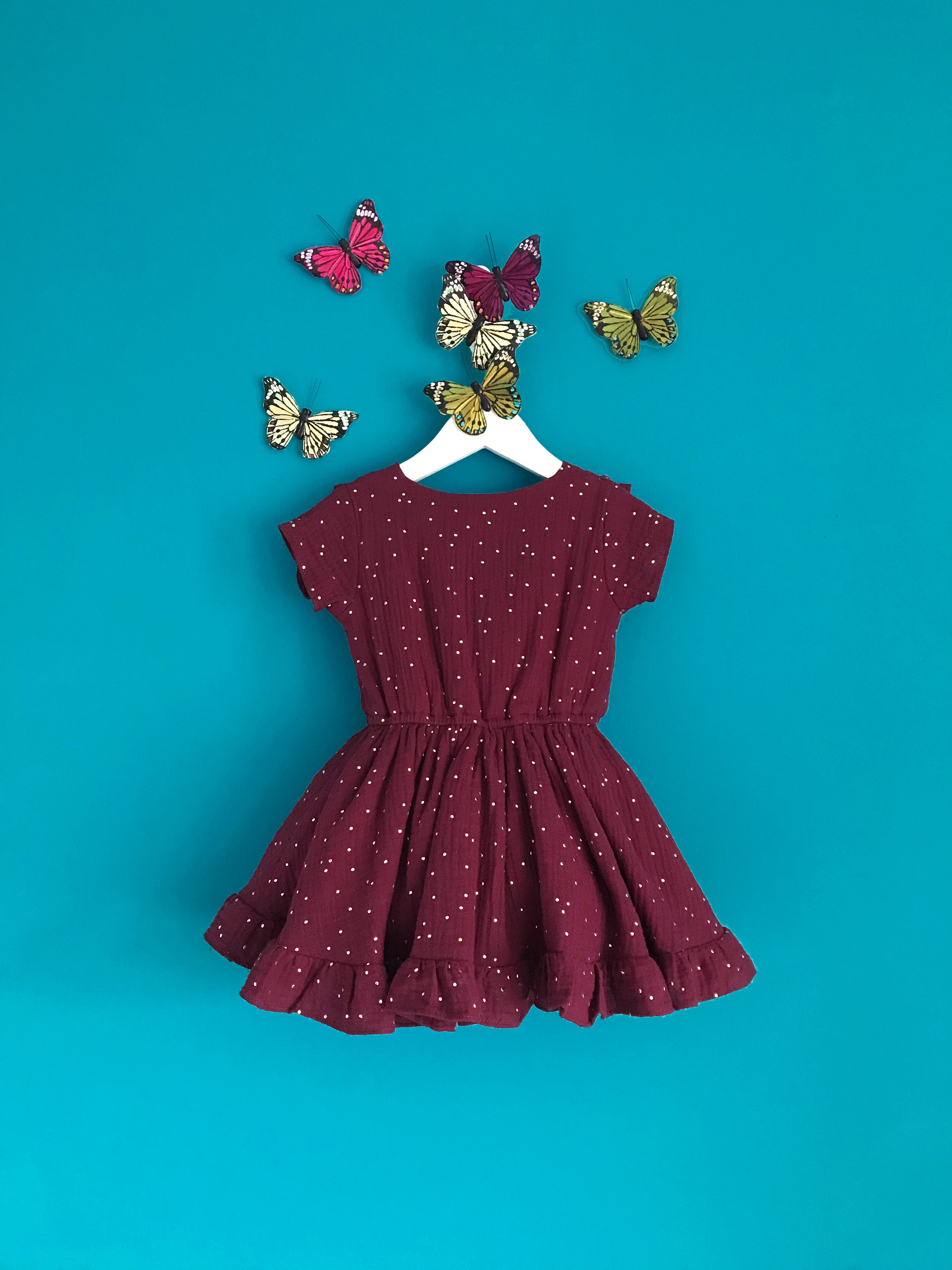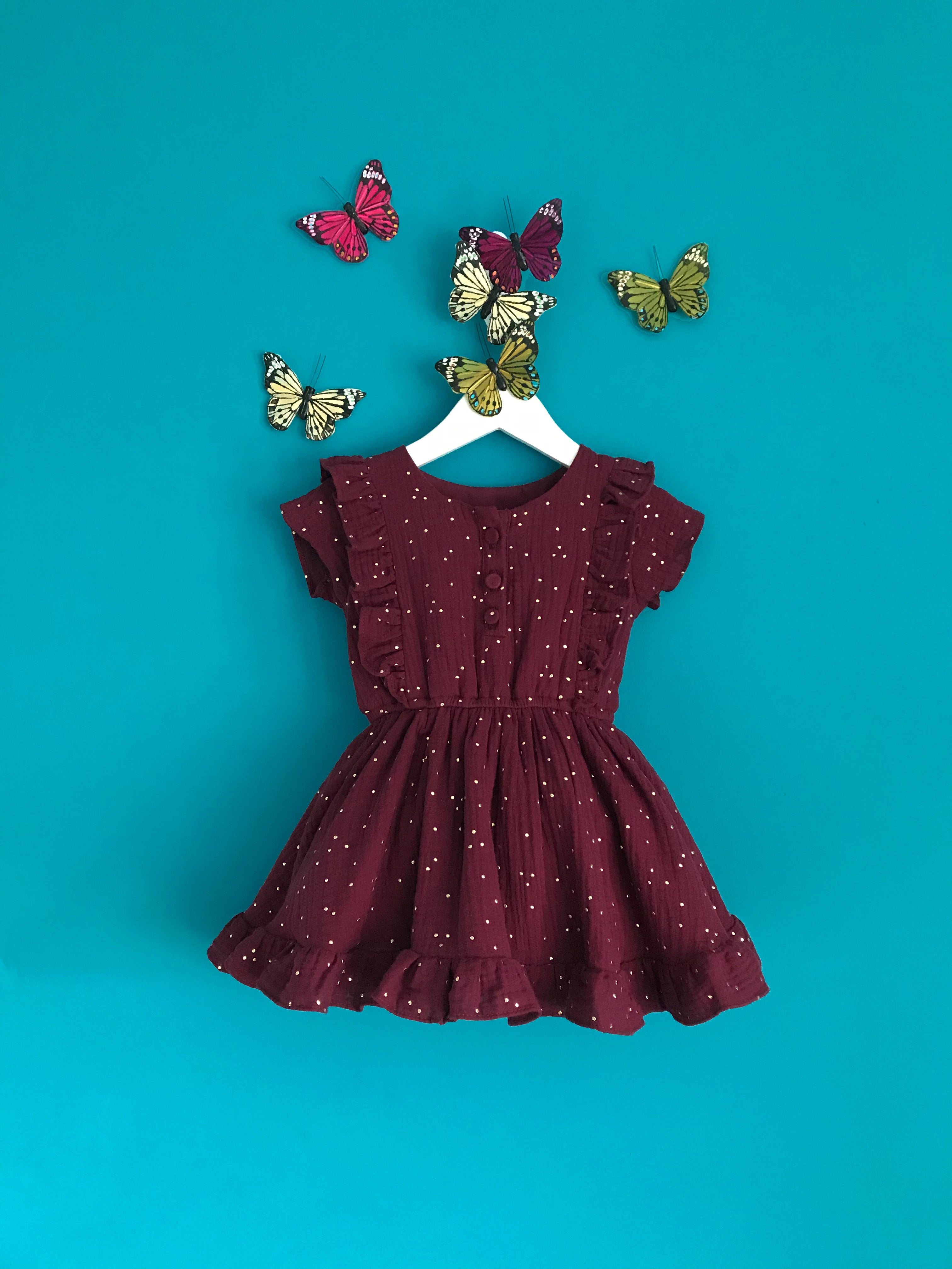 Glisten this party season with the subtle shimmer and sparkle of this gorgeous number. A luxurious Double Gauze Cotton in Cranberry with gold spot detail. Can be dressed up or down depending on your mood. Team with this season's edgy biker boots for a more contemporary twist or faux fur lined boots for a more boho feel.